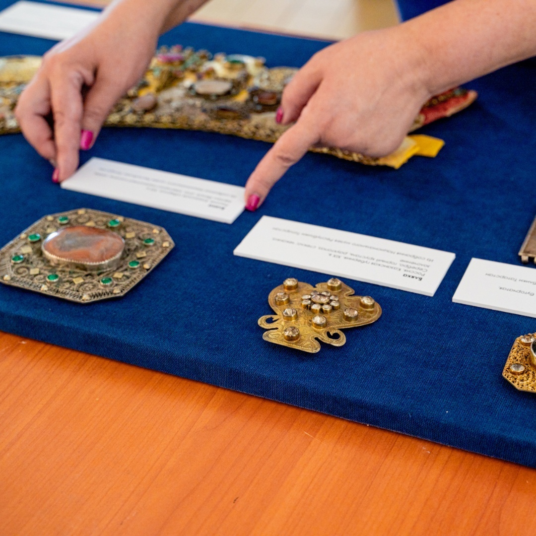 На выставке представлены археологические, исторические, этнографические памятники, предметы декоративно-прикладного искусства и местного ремесла и торговли, а также изделия народных мастеров: образцы золотного шитья, кожаной мозаики, ювелирные украшения.